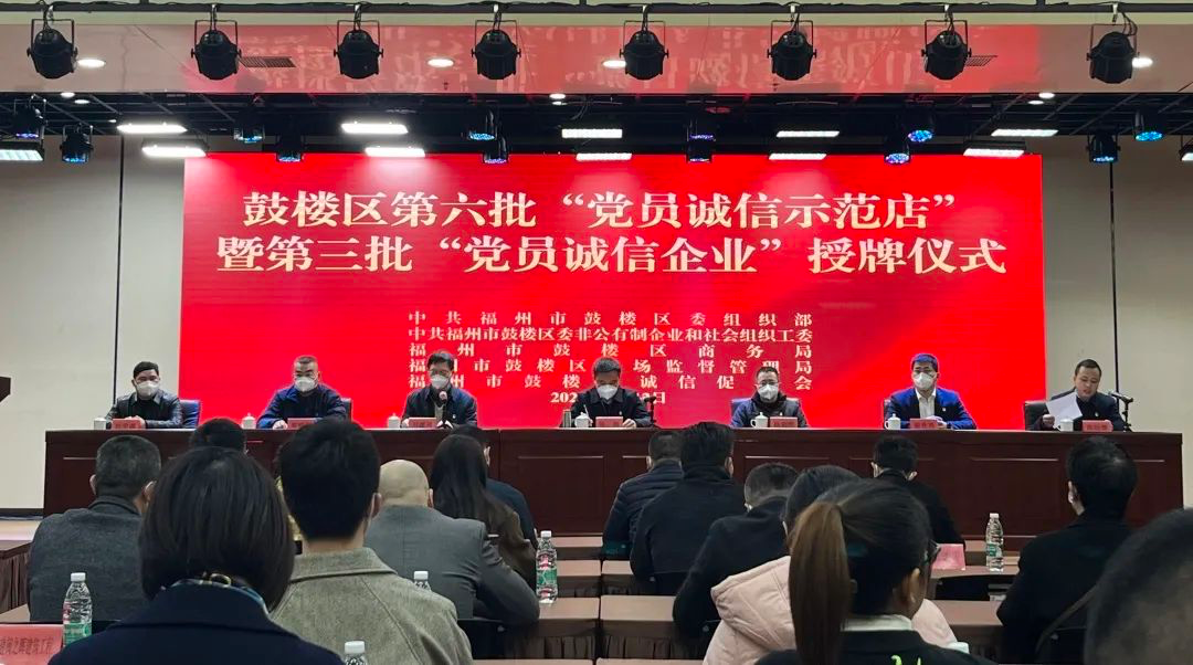 鼓楼区委常委、组织部部长陈恒出席会议并讲话,区诚信促进会会长刘建兴宣读授牌决定。会议指出,要深入学习贯彻习近平新时代中国特色社会主义思想和党的二十大精神,认真落实党中央关于社会信用体系建设的总体要求,进一步推动鼓楼区“党员诚信示范店”、“党员诚信企业”品牌提升及创建工作不断深入,巩固深化创建成果。